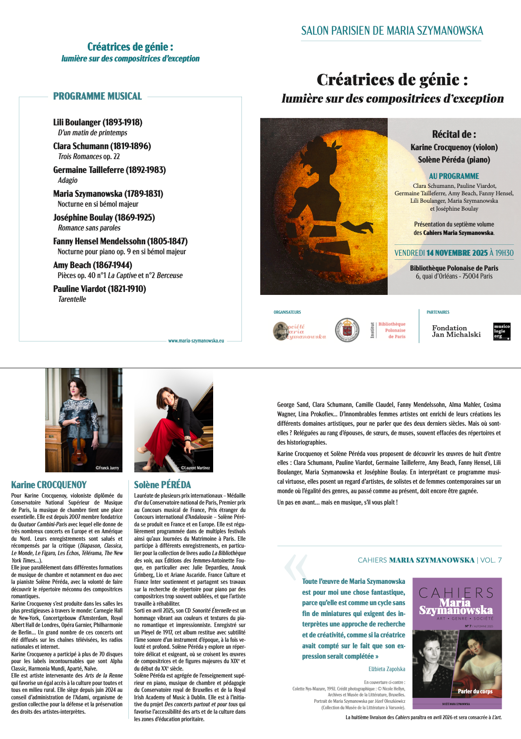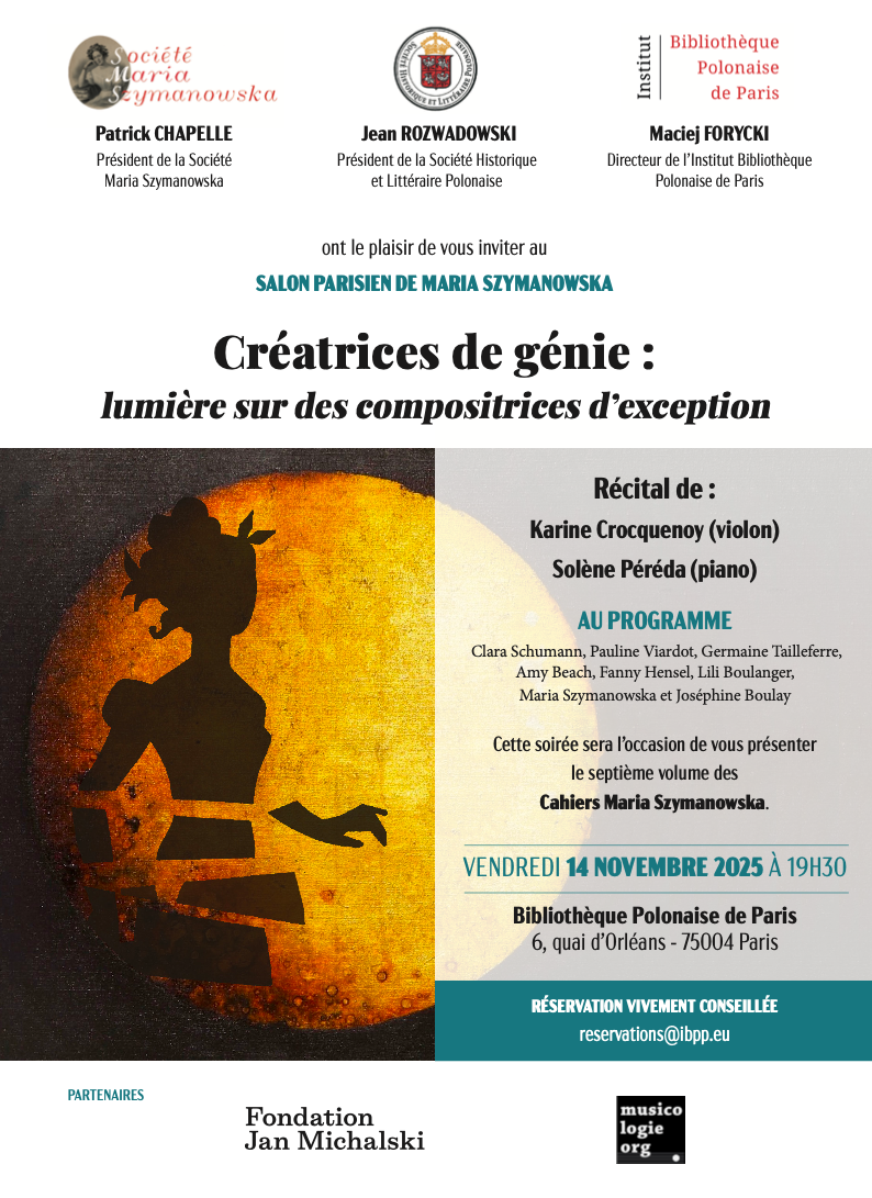 Najbliższy Salon Muzyczny Maria Szymanowska odbędzie się w Paryżu, 14 listopada 2025 roku.