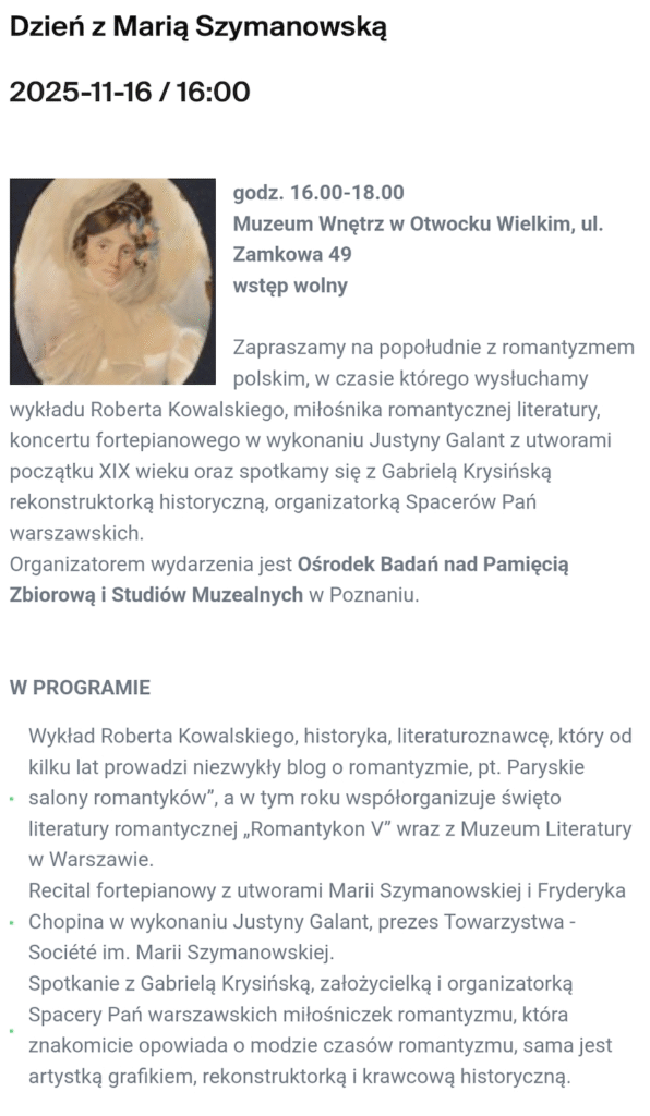 16 listopada 2025 roku odbyło się wyjątkowe wydarzenie poświęcone twórczości i dziedzictwu Marii Szymanowskiej.